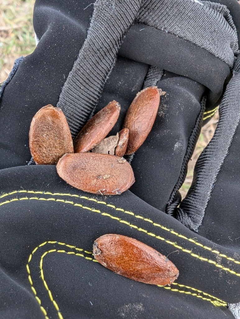 We went to the farm yesterday and continued to work on the garden. There is a lot to do to prepare for the next year. We decided to go get rocks from the dry creek to start building more raised beds for next year. This was a lot of work but fun to explore the creek area. Although many things died after the first freeze, a few things by the creek are still green. I had fun identifying different plants in the area and made a few lucky discoveries while searching for rocks. We found some wild persimmon trees and took some persimmons to plant closer to the garden. These are American persimmon trees so the persimmons are small and have seeds. The ones from the store are usually larger and seedless. We also found more pecan trees and took some pecans to plant as well. I found some wild onion or garlic growing by the creek also. I found some mystery seeds as well and am trying to identify them. While getting the rocks, we saw an amazing murmuration of some type of blackbirds. After finishing with the rocks, I did a bit of planting and watered the garden. I planted some nigella seeds which were actually from the grocery store so may or may not germinate. I put these on top of my bulb garden. I also planted some crape myrtle seeds spaced out along the fence line. I have read that these have a low germination rate but hopefully one or two will come up. The cat is doing well and her eye is healing. She will get fixed this week, too. I am beginning to plan what to plant for spring and have ordered some seeds, mostly wildflowers. The vegetable garden next year will likely be small. Once we move there full time, we can expand it more. For next spring, I want to grow vegetables we use a lot of. We eventually want to establish a food forest permaculture type of situation. So we hope to plant more trees and shrubs first. I also have a few packs of seeds left over from last year that I had missed the planting dates on. So these will go out in the spring. I already have pinto beans, dahlias, quinoa, gladiolus, cumin, cayenne pepper, and Serrano pepper seeds. I want to grow more herbs for cooking next year since I really enjoyed having them this year. I am also planning to save the seeds from my last pumpkin for next year since it was grown from heirloom seeds. I’m learning so much about plants and am really looking forward to seeing the garden in the spring.