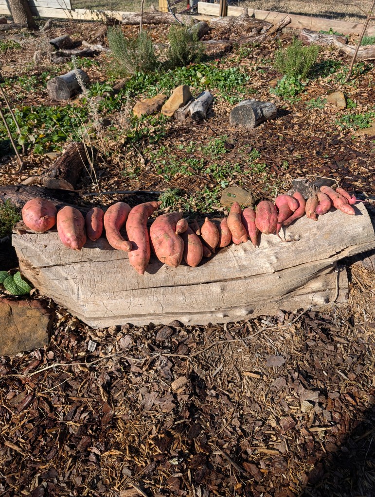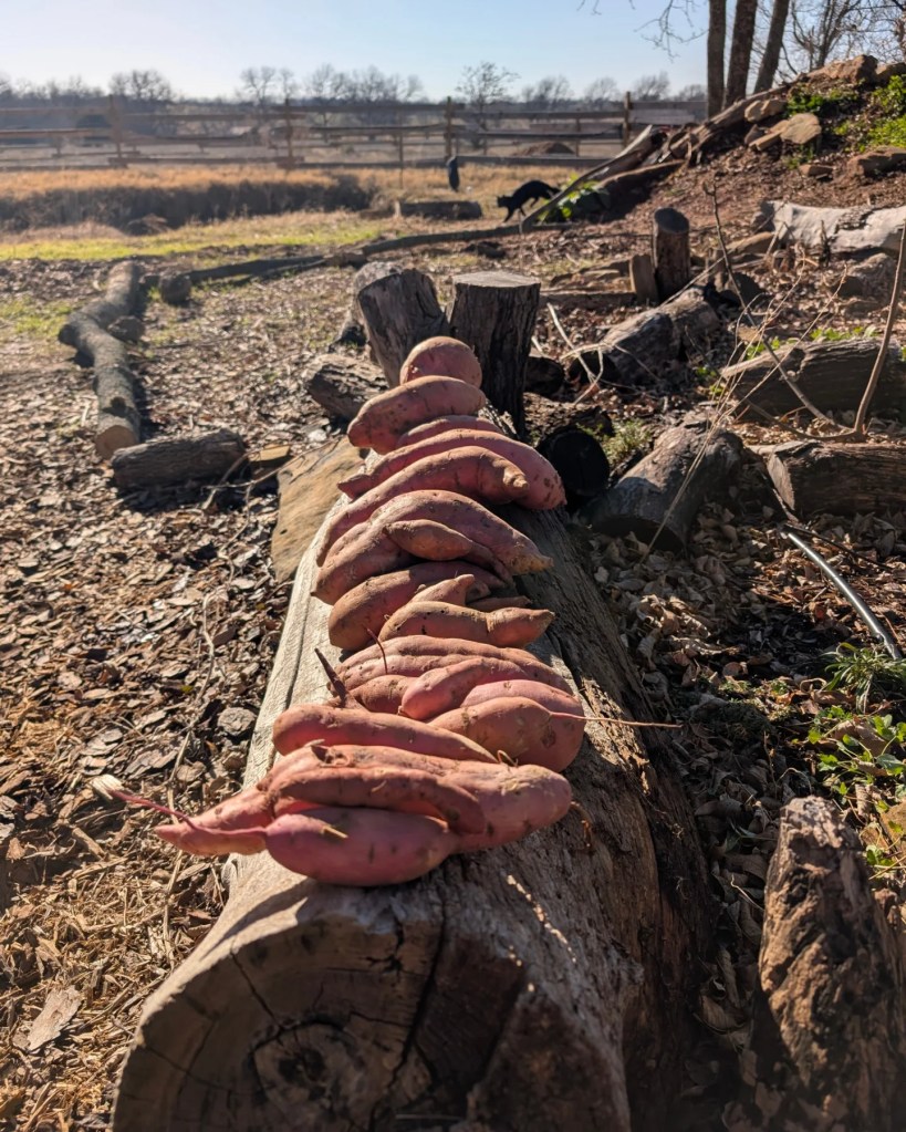This past Saturday, we visited the farm to do some work. I did a little winter sowing of white yarrow and shungiku. I ordered these from a site called freeheirloomseeds.org. I also ordered the wildflower seeds I planted a few weeks ago from a small Etsy shop called Bloom and Haul. I like to support small business when possible. These were both reasonably priced but will have to wait until spring to see if the seeds germinate. It has been a warm winter so far this year in Oklahoma and I hope they can grow well. As I was looking for onions on Saturday, I saw a sweet potato sticking out of the ground. There are 3 onions still growing but the bulbs are small so I replanted them. When I pulled the sweet potato up, I found many more. Most of them were huge. I have never seen sweet potatoes of this size in the grocery store. I found 28 sweet potatoes total. This was a surprise and a lot for 2 people to eat. Will have to cook and freeze some for later. We found about six small regular potatoes as well. I guess the sweet potatoes took over the space from the onions and potatoes. Maybe I should separate them next time. We are still working on eating the pumpkins from a month ago. My boyfriend worked on building some terraced hills for planting herbs and flowers on next year. We want to focus mostly on establishing shrubs, trees, and perennials next year. We will cut back on vegetables since they need more water and attention. We can have a more successful vegetable garden once we move there full time. We will still likely have a few vegetables growing next year, just not as many as I attempted this first year. Due to the seed exchange I joined, I may have more to plant than I expect. The seeds should be arriving in the mail soon. It will be good to have some diversity instead of a 160 tree persimmon orchard. I cooked kung Pao chicken this week from the brand Asian Home Gourmet. The flavor was average and the price was inexpensive. I have wrapped up my family holiday gifts for the year. My family got sick unexpectedly so I cannot visit them this year. I will likely go to the land again tomorrow to work more and hang out with my kitty 🐈.