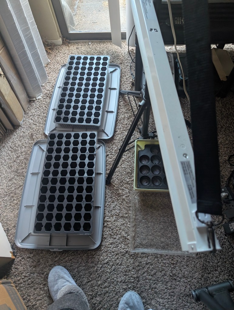We have found preexisting invasive species too. We found Japanese honeysuckle and Easter red cedars growing in the pasture. Both of these are considered invasive species. The Eastern red cedar is particularly confusing as it is a native but also invasive. I read that it is usually managed with prescribed burning. We also noticed an invasive insect this weekend: the emerald ash borer. We didn’t see the insects but definitely can see the damage to the ash trees. Apparently, this a real problem and is killing millions of ash trees in America. I will do more research on this topic in the coming weeks. I am trying to plant lots of native species to support the wildlife in my area. My boyfriend brought me many seeds from his mom’s house this week, including vitex, sedum and rose of sharon. I have not prepared those seeds yet. We have a large butterfly population on the land, although there seemed to be fewer in 2024 than previous years. I am hoping to help support them and other pollinators since they are so important to our food supply. I have also seen many species of birds as well as many types of animals, including: coyote, skunk, opossum, rabbit, snake, turtle, and squirrel. I have been reading a book about seeds that I am really enjoying. I will put a picture below for reference. I tried a garden planning app called Planter this week as well. The plant options on the app are too limited and the space too small for my massive garden plans. I have also recently gotten a new mug and water bottle so I can attempt to reduce my microplastic intake. I am a big fan of the Le Creuset mugs my boyfriend gave me. They are really hard to break and hold the heat well. I found this water bottle on clearance at Walmart and I love the loop on the lid for easy carrying. I recently learned that tea bags contain lots of microplastics and I drink a lot of tea. So I am hoping to grow a nice tea garden this year to reduce that also. I have changed my seed starting plans a bit. I am planning to start the celery and cardoon next week, probably during my Lunar New Year holiday. The celery and cardoon will go outside in the square tray. I will begin the tomatoes and peppers around Valentine’s Day inside in the big trays. Happy year of the snake 🐍