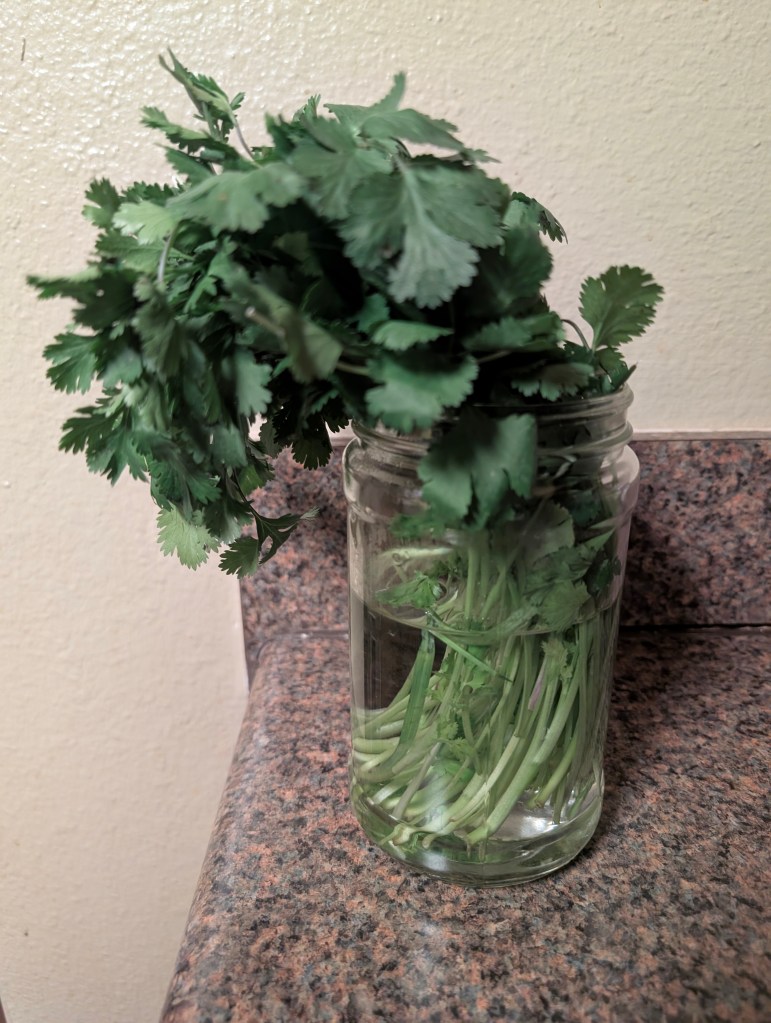 This week, we had our first very hot weather of the year in central Oklahoma with a few days around 90°F already. We also had more rain this week. There were a few short but heavy storms and I took a cool photo of the lightning. I was busy with work this week and I did not go to the farm at all. Instead, I have been trying to start more plants from seed on my apartment balcony. Some of my plants have handled the weather well, but some don’t like the heat or wind. A few of my taller sunflowers have fallen over due to the wind. The chamomile has started to flower but is struggling with the heat and wind. The celosia I started germinated very well and seems to like the heat. I transplanted a small cilantro outside and it lost its leaves in the heat. I have a few radishes and some lettuce in pots as well. They have been drooping a bit when it gets hot. The peppers also seem to dislike it over 85°F and start to sag. My zinnias are getting eaten up by something but I can’t see what it is. While walking around town this week, I saw some beautiful flowering shrubs that I would like to get in the future for the farm. One is called a Virginia sweetspire and the other is a kind of spirea. I have also started a basil and cilantro in my apartment so I can have them year round and not worry about them bolting in the heat. I remembered this week to put my herbs in water to keep them fresh until I use them. I am trying to propagate a thyme cutting in water but it doesn’t have roots yet. My alpine strawberries are starting to grow. My boyfriend got the first tick of the year and we learned a new trick to remove them with a lint roller. I made a lot of dishes with the herbs I harvested last week but the eggs with chervil were my boyfriend’s favorite. There will be more rain tomorrow and next week. I hope this means that it will cool down a little. It has been a very rainy spring and it will be interesting to see how my garden is doing. My boyfriend’s mother said that she had softball sized hail during the storms and her house is near our farm. I hope there’s not too much damage to the garden. I will need to do more clover maintenance when I return to the farm before planting. I want to bbq next time I go to the farm but that depends on the weather. I plan to go to the farm again on June 7th. My boyfriend surprised me by ordering me a new permaculture book to read. I am looking forward to checking it out when it arrives.