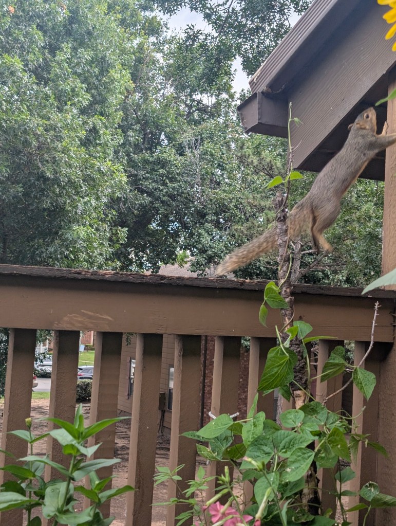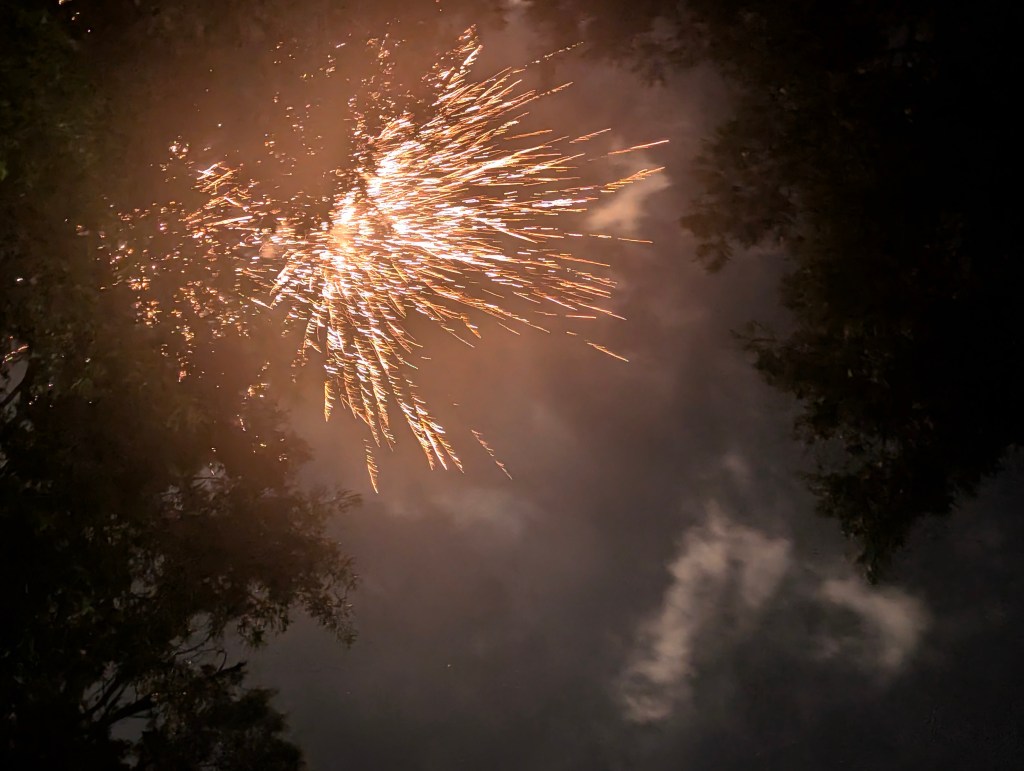 It has been raining again this week in here in central Oklahoma. This year has been especially rainy. The rain is good for my garden as it would usually be much hotter and drier by now. The mosquitoes continue to invade my apartment. I haven’t been to the farm this week because it was a very busy week at work. My boyfriend’s mother gave me two more vitex trees and these are the pink ones. The one I have already planted is blue. I will take the two vitex and plant them the next time we go to the farm. I also have the hardy fiber banana tree, hydrangea, lavender, butternut squash, and moonflower that need to be transplanted. I did a drawing of Tinkerbell for my niece’s birthday. I call this drawing Tinker big legs because the legs are too big. I made chocolate chip cookies as well to take. I forgot to chill the dough so the first tray was a little off. Chilling the dough really improves the texture of the cookie and I think it is worth the extra time. I made a soup with zucchini, white beans, spinach, kale, onion, garlic, vegetable broth, basil and mint. This is very healthy but the taste is bland. Maybe I should have added a pepper. I am also planning to start making fruit smoothies to increase my fruit intake. It is 4th of July but I had to work so didn’t go out. Fortunately, someone was shooting fireworks near my apartment and I got a few shots. I always love to see the fireworks ππ. Tomorrow, I am driving to Texas to see my family. I am very excited to see them although it will be a long day for me. My balcony garden is doing great and I have several flowers blooming. The marigolds are starting to bloom. The zinnias and nicotiana also have beautiful flowers. I didn’t realize the nicotiana was multiple colors. There are pink, purple, and cream colored ones on my balcony now. I saw a praying mantis hiding out in one of my sunflowers after a heavy rain. I am lucky that it will not rain tomorrow during my long drive. I think it may rain again Sunday. I didn’t have time to read anything this week. I am hoping to visit the farm next week as I am sure the weeds are getting overgrown from all of the rain. Happy 4th of July to my fellow Americans!