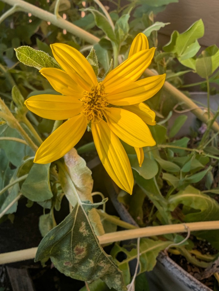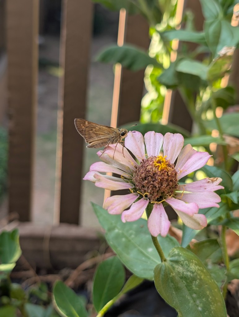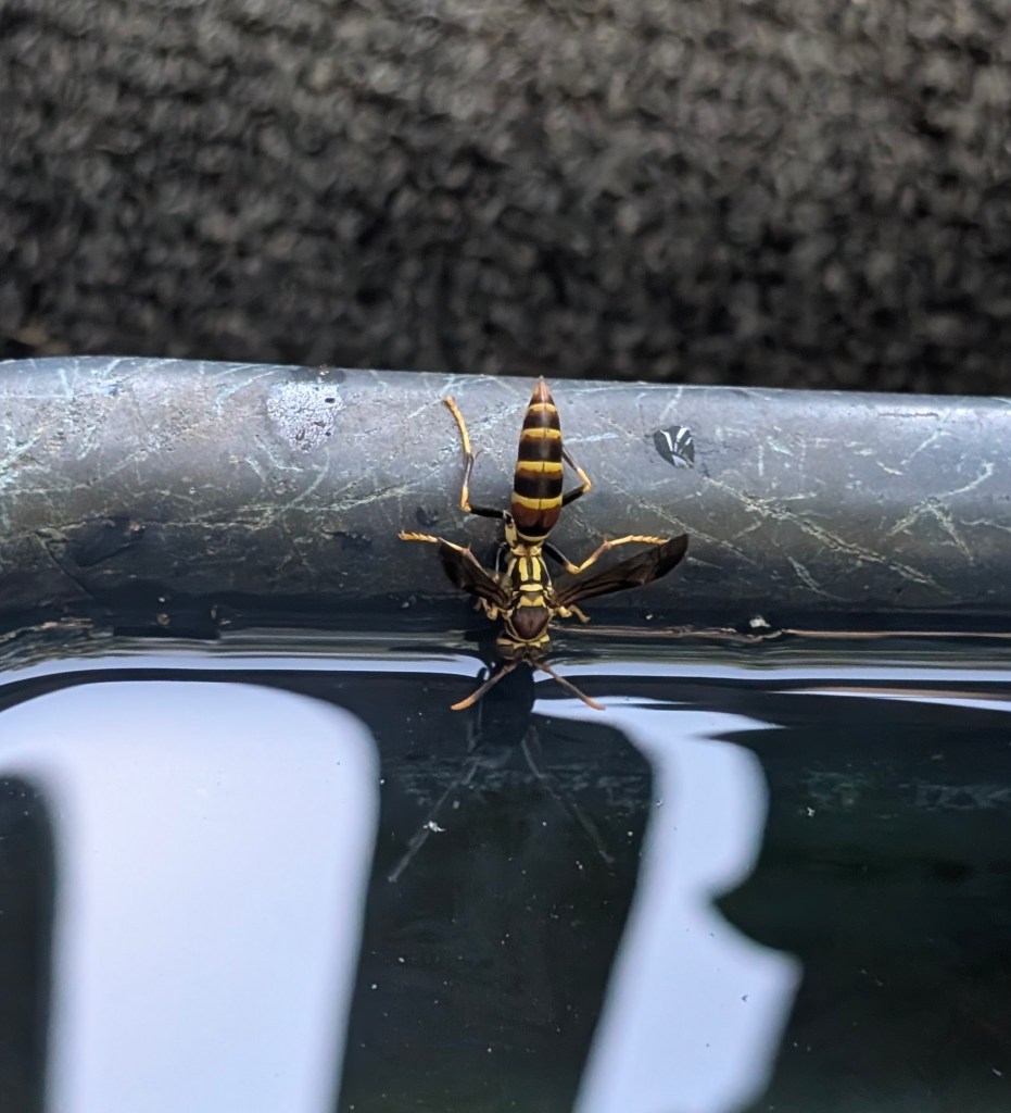 It has been a very hot week here in central Oklahoma. It hasn’t rained at all this week and the UV has been high. I usually check the UV when I go out because high UV can make my lupus flare up. I have been watering my balcony garden daily but it is still looking rather crispy out there. The basil is living its best life and loving the hot weather. The marigolds, zinnias, moonflower, and nicotiana are hanging on but struggling in the heat. The hardy banana tree and two vitex are still growing. The scarlet runner bean is getting sun burned on the leaves. My one bell pepper is still growing and doesn’t seem to have blossom end rot as I had suspected. The peppermint has not been doing well in the heat. The hydrangea is still looking good. I will be going to the farm next week to do a lot of maintenance. I am sure it will be quite overgrown since it has been such a rainy summer. I had a few small sunflowers or possibly Jerusalem artichokes bloom this week in the balcony. They have yellow centers so I am not sure if they are sunflowers since most have black centers. I saw that sachem again this week on the zinnias. I have a small bowl of water I keep on the balcony for the birds and squirrels that I refill daily. When I refilled it today, I saw a little paper wasp getting a drink. I finally made the butternut squash and apple soup and it turned out great. My boyfriend especially liked it. I used onion, celery, carrot, garlic, butternut squash, unsweetened applesauce, vegetable broth, paprika, nutmeg, salt, and pepper to make the soup. My boyfriend’s birthday is coming up in a week and a half. I may cook him a steak dinner for his birthday. If I don’t have time, I may buy him a dinner from a Thai restaurant instead. I think he wants a banana split instead of a cake this year. I am still reading the book from last week, Learning to Paint and Draw by Hazel Harrison. It is really thorough and I hope to finish it this week as I need to return it to the library soon. I think it will continue to be hot and sunny here next week. I am hoping for some rain to come and drop the temperature before I go work on the farm on Saturday. But then it would be humid and that isn’t ideal, either. I always feel so grateful for air conditioning this time of year and think I am lucky to work indoors. Stay cool, y’all. 🍦