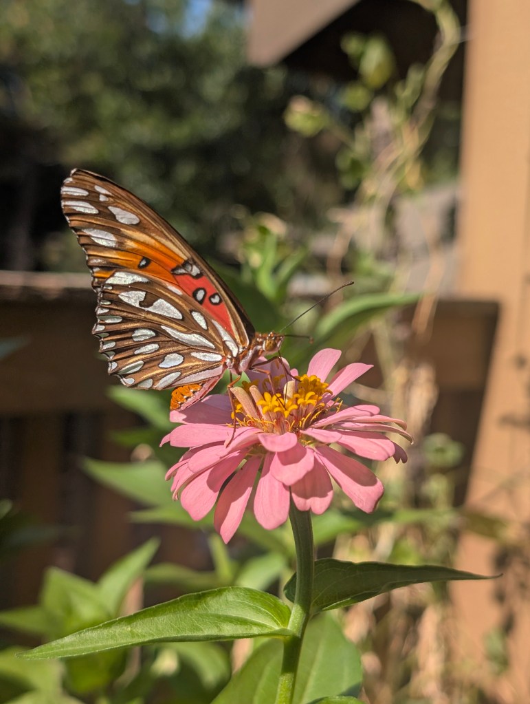 The weather has continued to be hot and humid here in central Oklahoma this week. It is cooling down a bit and it seems that it might rain again this week. We did not visit the farm this week and we are planning to go again on the 30th. I will be doing some more vine maintenance, I suppose. The balcony garden is looking better when the weather is cooler in the evening and early morning. Some mushrooms popped up after a short shower under my basil. I saw a beautiful gulf fritillary on my zinnias this week. The zinnias are continuing to be very attractive to the pollinators. I have photographed the gulf fritillary before at the farm. Their host plant is the passionflower vine but the adults eat the nectar of many flowers. They have the same colors as the monarch. Their range is expanding northward due to climate change. I also saw a rather beat up looking hackberry emperor this week. I have been reading a book called Butterfly Gardening this week. I learned that butterflies can withstand significant wing damage from weather, snags on plants, and predators. However, they can usually still survive even with seriously damaged wings. I also learned that butterflies can fly up to 12 or 13 mph. Pretty impressive for such small creatures. I had wondered how they could handle the Oklahoma winds. Apparently, they can use the wind for a ride to travel long distances, such as during migration. The two vitex are growing a lot since transplanting. The bell pepper has sprouted a second pepper. The first one is almost ripe but a bit small and burned from the sun. The red yucca is looking ok but the hollyhock didn’t make it. I have started a few more seeds for the fall, mostly perennial flowers. So far only black eyed Susan has sprouted in this round. Still early yet though. I acquired two new plants this week to take to the farm. The nursery was having a sale so I got a strawberry sundae hydrangea and a whorled milkweed for 27 dollars. It was half off and I was pleased to get such a nice deal. I haven’t tried the whorled milkweed before but the leaves are thinner than other varieties of milkweed I have seen. I have started two more milkweed from seed again, common and showy, but I have not had much luck starting them in the past. Of course, I want to grow some for the monarchs. Fortunately, we already have some of the wild antelope horn milkweed at the farm. I have been busy this week with work so we have been eating rice and beans all week. Always a cheap and delicious meal. I am thinking of making fideo soup next week as well as some pork chops. I have been working on some more torso studies this week as well as butterfly sketches. I am planning to continue to do more butterfly drawings next week.