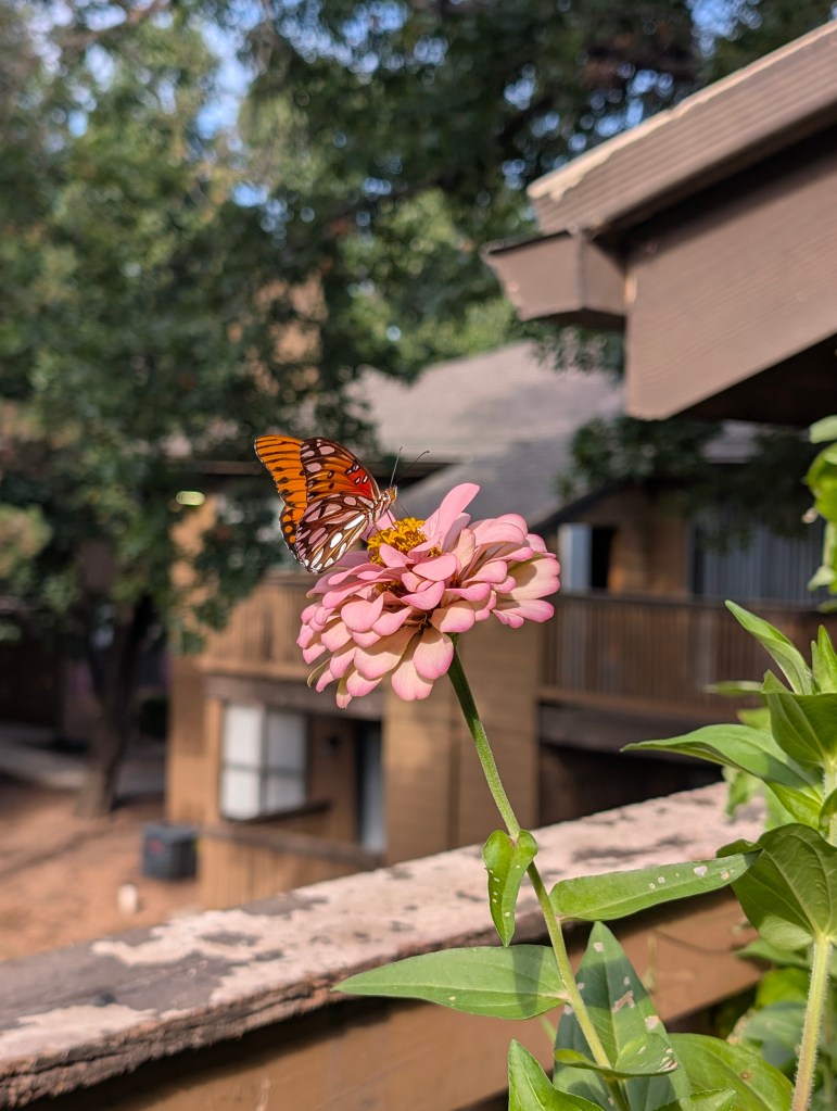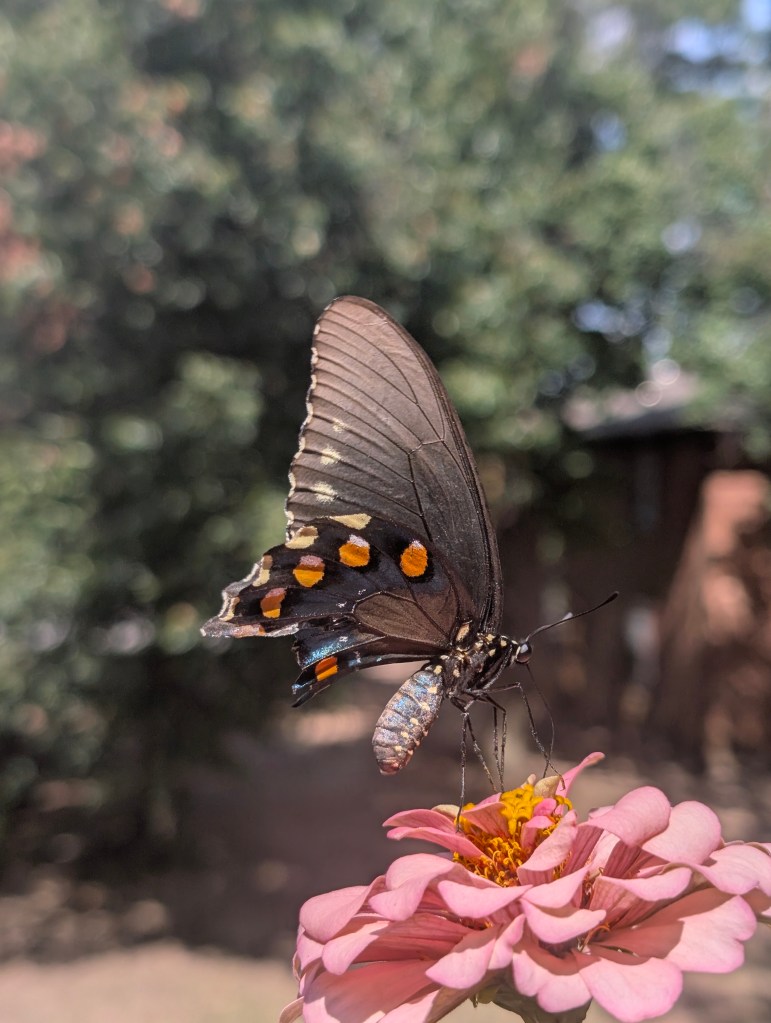 It has been another rainy week here in central Oklahoma. I didn’t go to the farm last week but I am planning to go on this Saturday again. The pear tree and the walnut tree are still on the balcony at my apartment. They aren’t getting much sun and look a little droopy. We will plant them on Saturday and I will take some of my seedlings to plant as well. I have been putting them outside on sunny days to get them ready to be transplanted. I plan to plant a few black eyed Susans, blanket flowers, dianthus, dragon’s blood sedum, Texas star hibiscus, and a confederate rose. My boyfriend also ordered more comfrey and clover for ground covers for next year. His mom bought me some irises to plant that are dark colored and look lovely. We have a large patch of bearded irises that are very overgrown left by the previous owners of the property. I don’t think I will be able to spend the time to divide them this year but I will try to do something with them next year. My balcony garden is doing well and most of the flowers are still blooming. Something is eating the ginger and my bell pepper .It was a good week for spotting butterflies and I even had a hackberry emperor land on my bag on the way to the library. I saw a new one, the pipevine swallowtail, which was very beautiful and large. It has a really pretty iridescent blue color on some parts and has long legs that look like a mosquito. I also saw a pretty question mark and a gulf fritillary that was smaller than others I have seen before. I saw a hummingbird again this week one day around noon but I didn’t get a photo. I drew a picture of a cloudless sulphur and next week I may draw the question mark. My mom has requested that I draw her a picture of Michael Jackson from the Bad video, so I will probably make an attempt to do a drawing of him soon. I started reading a book this week called Raising Goats for Dummies. When we move, we want to get some animals, including goats. So, I want to educate myself about caring for different types of animals. I didn’t cook much this week because I was too busy. Next week, I plan to make slow cooker pork shoulder and white beans and spinach soup. It is starting to feel like fall and fall is soup season for me.