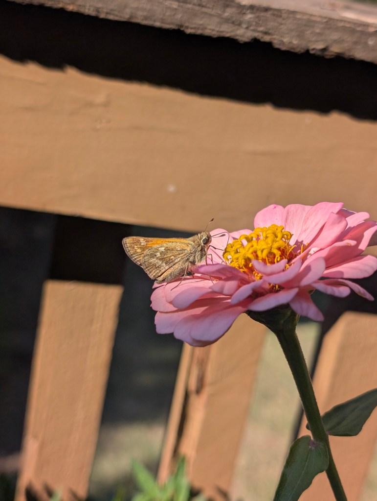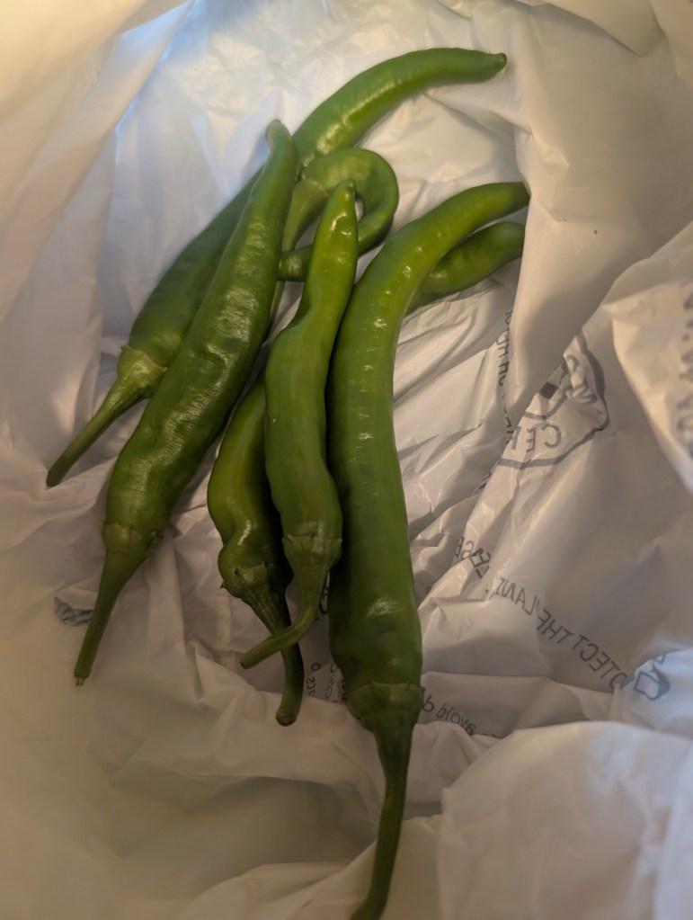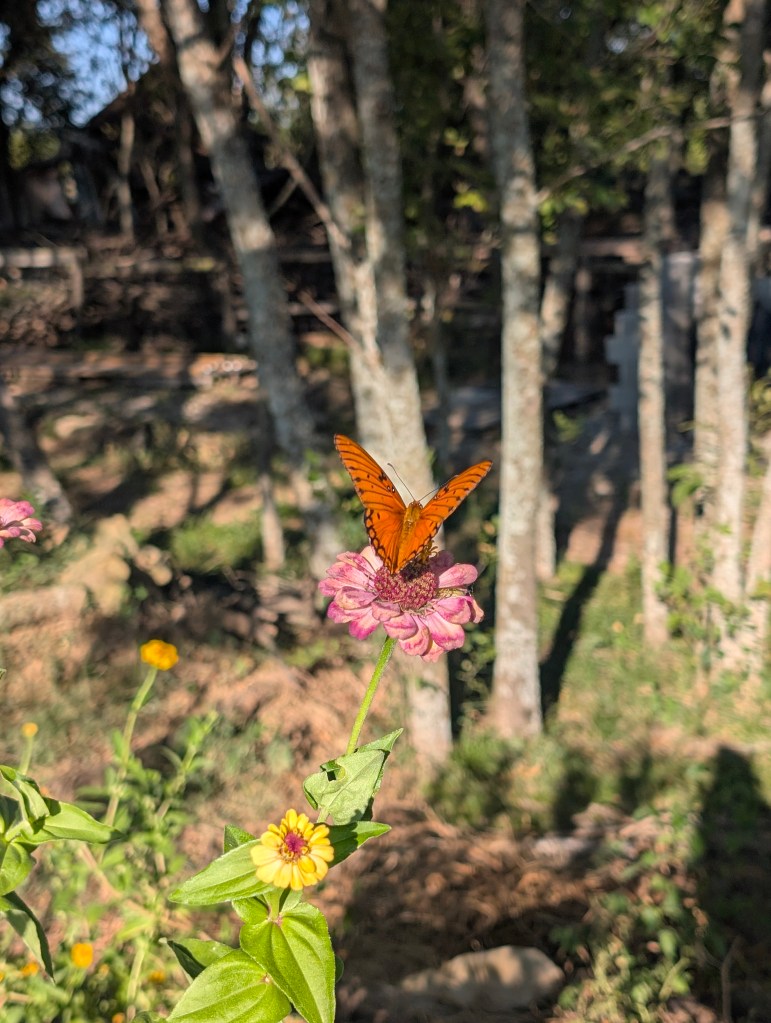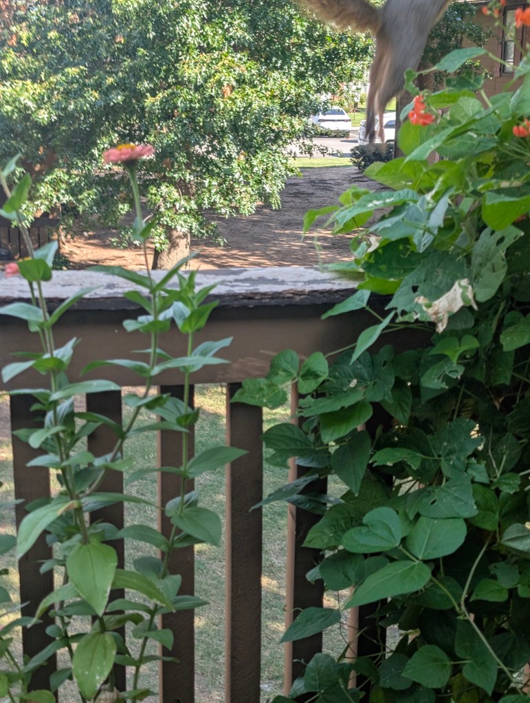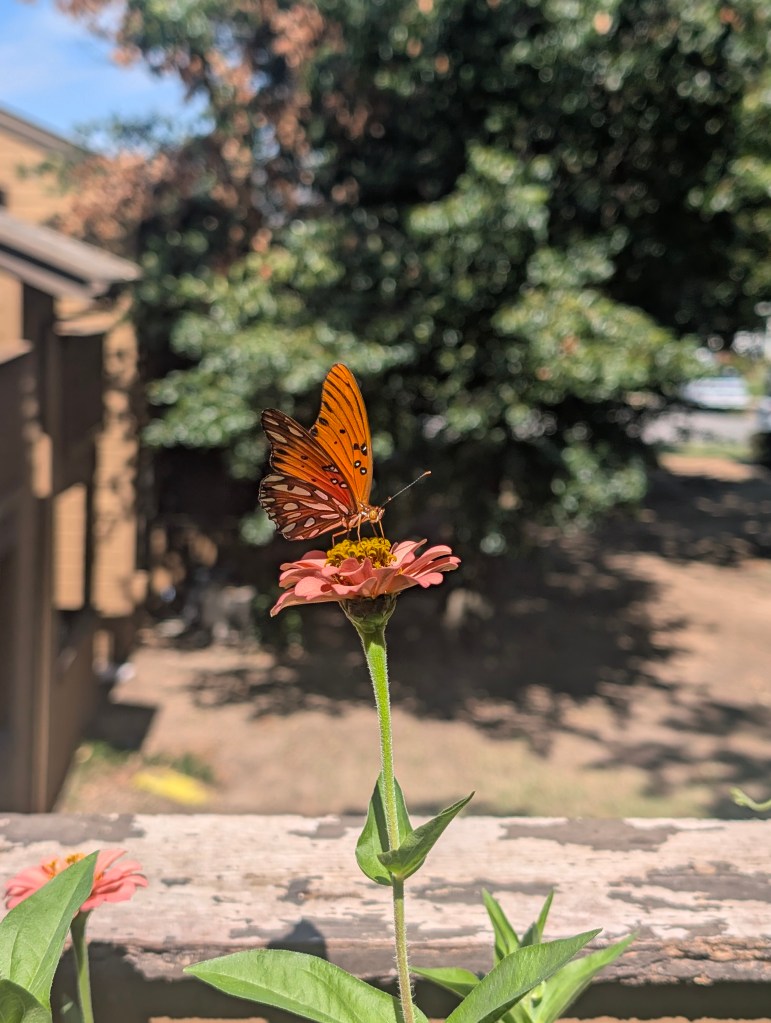 This week started out with rain and ended up hot and sunny in central Oklahoma. I saw a hummingbird again twice this week on my balcony checking out the zinnias and scarlet runner bean. I was happy to get a photo of it this time but still had trouble identifying the type of hummingbird it was. Google told me that it was a ruby throated hummingbird but it didn’t have a red throat. I saw a lot of butterflies on the zinnias this week but I only got a few photos of a gulf fritillary. The zinnias, nicotiana, and marigolds are still blooming on the balcony. Something is eating my peppers on the balcony and I don’t think I will get any good ones this year. However, I went to the farm yesterday and I harvested some serrano peppers. There were also a lot of cherry tomatoes ready to pick but I didn’t have time to get them. I didn’t take any herbs either but the sage was doing well. The oregano, thyme, and rosemary are not looking their best now. It was over 90° F yesterday and quite humid. Only a few things were blooming in the heat, including the lantana, zinnias, scarlet sage, mist flower, rose of Sharon, goldenrod, and celosia. The four o’clocks were also blooming and some pretty pink balsam impatiens have come up. Most of the garden looked too dry and so we increased the watering schedule. We planted the walnut tree and the pear tree yesterday. I also planted a few other things including: red yucca, blanket flower, nicotiana, black eyed Susan, irises, anemones, one allium in poor condition, dragon’s blood sedum. Most of the things we planted last time were alive but struggling in the heat. Something has been eating my milkweed and I think it might be monarchs. The pawpaws and the hydrangeas had some brown and crispy looking leaves and they need more shade and increased water. I had a small coral bells to plant but forgot about it and left it there. Hopefully it will survive until I return to plant it. I saw some cool caterpillars yesterday at the farm. I saw a yellow striped armyworm, a question mark caterpillar, many black swallowtail caterpillars on the fennel, and a tomato hornworm parasitized by wasp larvae. I didn’t have much time to photograph butterflies yesterday because I had so much planting to do. I had hoped to see the datura blooming but I didn’t see any flowers although it had a lot of buds. I did see some of the cool spiky fruit of the plant under the leaves. The fig and peach trees are doing good but don’t have any fruit. The hardy banana tree has grown since we planted it. The comfrey has died back in the heat. My cat is doing well but I heard her sneeze once. I made some mango chutney from a recipe from a book called Preserve It! It has to age for a month so I don’t know how it will taste yet. It is my first time to make chutney. I also made some kimchi for my boyfriend using the recipe from Maangchi. It was challenging to make and it will be ready to eat tomorrow. I will probably pickle the serrano peppers from the farm but I may freeze them instead. I tried a delicious Dubai chocolate bar this week. The chocolate was super creamy and the filling was crunchy. I have not had much time to draw or read due to cooking a lot this week. I don’t think we will be going to the farm this week but I have some time off next week so we might go then. I am looking forward to the long vacation.