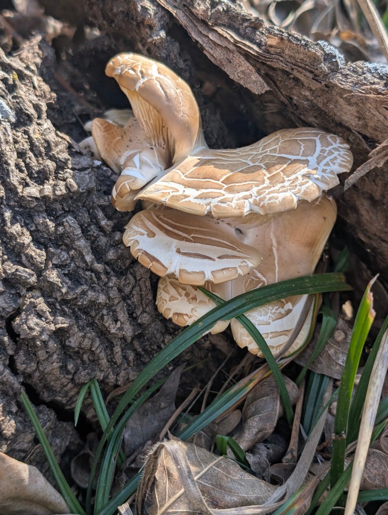 The weather has been fluctuating a lot with high winds for most of the week. If I have learned anything about weather in Oklahoma, it is that the high winds can make it unpredictable. The days have been mostly warm and the nights cold. I made a ham butt with the bone in on Monday. I made a glaze with brown sugar, orange juice, Dijon mustard, and ground cloves that was very tasty. I continued to draw animals this week and I also drew a dragon called a wyvern from a book. I went to the farm yesterday and it was a pretty cold day. I saw a big mushroom that I think is an edible oyster mushroom 🍄. However, I am not an expert in mycology and I am not brave enough to eat wild mushrooms yet. I also saw the first asparagus spear of the year coming up. I was very surprised to see it. After searching online, it seems that it is a few months early for asparagus to come up in my area. I attempted to build a trellis in an obelisk style using some extra tree limbs and branches. It was a lot of work to find suitable straight pieces of wood of similar lengths. We bought some hemp rope to tie everything together but I didn’t finish this step. My boyfriend also prepared four trellises by digging holes and putting cedar posts in the holes. Then, he used nails and hemp rope to make something for the plants to climb. We may put grapes or kiwis over there with some other vines. When I was searching for branches, I came across a large animal burrow. I am not sure what is living in there but the opossum has moved out of the barn for now. Opossums do not dig burrows but I think it could be a skunk or large rabbit in there. I also saw a dandelion in bloom, another of the first signs of spring. I saw many hackberry nipple galls around the hackberry trees. I did a lot of pulling weeds in the bulb garden and I also planted some perennial wildflower seeds around the shrubs on the long hill. Many of the bulbs are popping up early as well. We have decided to move the walnut tree further away from the grapevine area since they don’t grow well together. We did water the garden when we were there and it began to freeze as the sun went down. The cat 🐈⬛ is doing good but she is scratching a bit. We just gave her some flea and tick medicine last week but it doesn’t seem that effective. I’m preparing to make my first sourdough loaf tomorrow using a recipe from a book. It will be a round freeform loaf since I don’t have a dutch oven. I have also finished reading The Complete Artist’s Manual by Simon Jennings. I particularly liked the sections about rendering surface textures and interpreting color and pattern in this book. Next week, I am also going to attempt to make my own yogurt from store bought yogurt. I got a small raise this week and decided to treat myself to a new watercolor set by Mungyo. Unfortunately, the delivery of the set was delayed due to animal interference. I am not sure what happened but hopefully they will try to deliver it again tomorrow. I am really looking forward to trying out these new paints soon 🎨.