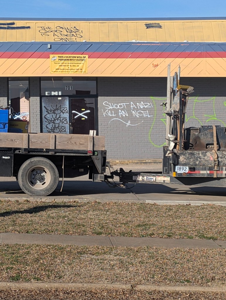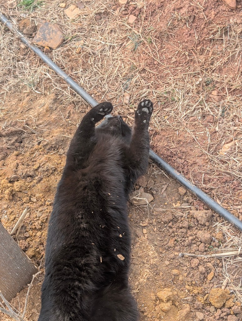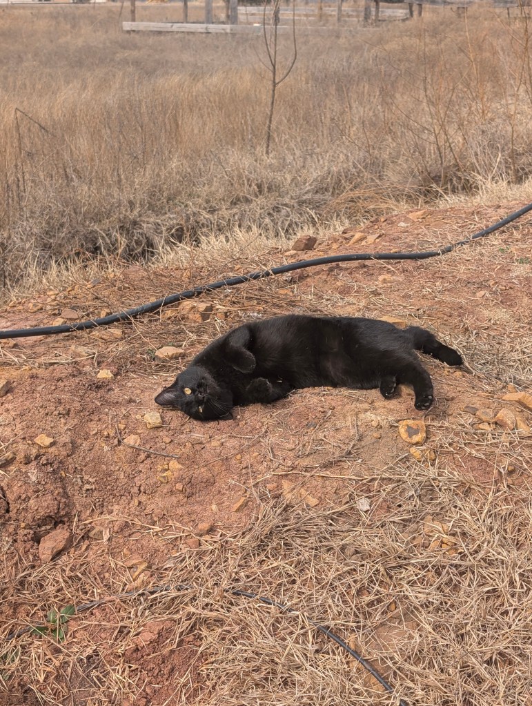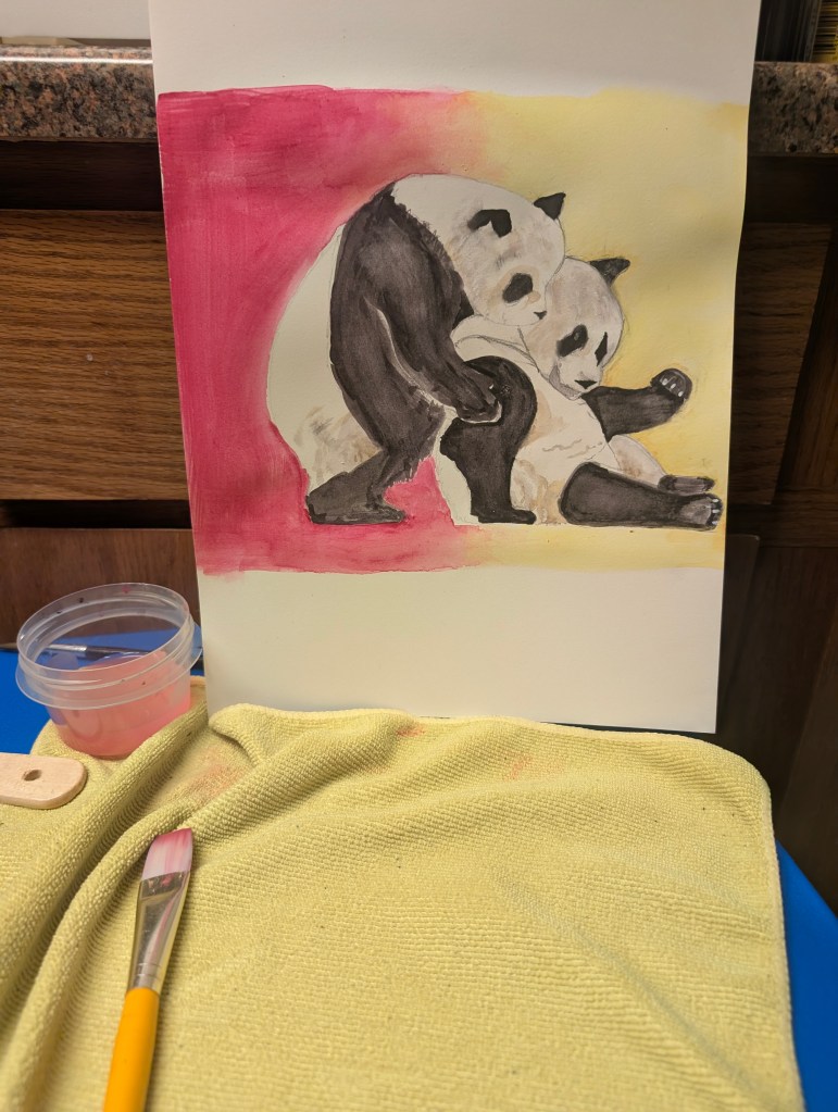 It has been a beautiful and warm week in central Oklahoma. I have been continuing to prepare for the spring garden this week. We went to the farm yesterday and I pulled lots of weeds. I am definitely beginning to see why raised beds are so popular. It is difficult for me to start seeds in the ground because the tiny seedlings can’t compete with the aggressive weeds. So I am trying to start more indoors this year to transplant them out once they’re large enough to battle the weeds. I have had reasonable success this year so far on week 2 of indoor seed starting. I have gotten 73 out of 144 germinated so just above half. The delphinium, lupine, butterfly pea flower, African daisy, and four o’clocks haven’t germinated. We’re also going to be buying more established plants from nurseries that can compete with the weeds. This week we emptied out our change jar 🪙 🫙 and used the money from Coinstar to buy two new plants. I got a blue girl rose bush and I really love the flower color. I also got a tangerine beauty crossvine to put on a trellis by the grapevines. We are also considering to buy the Eden climber rose for another trellis but haven’t yet. The ajuga transplants I did last week mostly looked good. However, the Shasta daisy transplant didn’t look good. I planted some seeds of blanket flower and hollyhock in the bulb garden. I saw two pretty wild flowers blooming this week, a hairy bittercress and a yellow wood sorrel. These are both edible but we didn’t try them. I uncovered a cluster of braconid wasp cocoons when pulling weeds around one of the pawpaw trees. These are beneficial as they are parasitic to tomato hornworms. We saw a lot more spider egg sacs along the fence line. We saw another burrow near the fence as well. We also noticed that most of the eastern red cedars have lots of bagworm cocoons. As the sun set, we noticed a lot of moths flying around one particular dead tree. I always think the sunsets in Oklahoma are so beautiful this time of year. I had a great Valentine’s dinner with my boyfriend and lots of roses. He bought me a beautiful dress and a pair of shoes as a gift and they fit well. I finished my sister’s panda painting and it turned out pretty good. I didn’t stretch the paper before painting and it warped a bit. I have put it under a heavy book and hope it will straighten out. I saw some interesting graffiti in my area this week. I was very happy to buy my favorite girl scout cookies this week, Samoas. I have a couple of days off this week because of Lunar New Year. I would like to do a few more paintings in my time off.