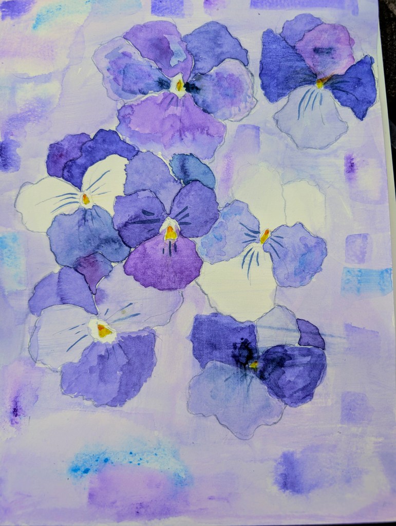 The first half of the week was very warm and windy in central Oklahoma. I have already started putting the seedlings on the balcony for a few hours when the weather is warm enough. The second part of the week has been much colder and even freezing in the mornings. So we had to shut down the watering system again at the farm. We are having a severe drought here and I hope we can get some rain soon. I had a few days off at the beginning of the week and I enjoyed sleeping in. I had put my recently purchased crossvine and rose bush on the balcony since the weather had been great. I also put the ginger and aloe vera outside when it was warm. Unfortunately, my squirrel friends loved munching on my new rose bush. They ate up most of the new growth and scratched up the canes a bit. They also took a bite of the aloe vera. I have moved both the crossvine and the rose bush indoors with the seedlings due to the freezing weather. I will put the crossvine out again when it warms up but the rose bush will have to stay inside until planting. I will have to check in the future before putting my plants outside if they’re on the squirrel menu. I did some more work for my boyfriend this week and he bought me another plant as payment. This time we got a Summer Crush hydrangea from TLC. My boyfriend is a big fan of hydrangeas and this is our fourth. We already have a Snowball, a Nantucket Blue, and a Strawberry Sundae, I think. The Snowball is a white oak leaf, the Nantucket Blue is the original pink and blue hydrangea, and the strawberry Sundae is white and pink. This new one is a bright red to purple hydrangea. We have clay soil so it is a bit of effort to get hydrangeas to change color here. I think clay soil is more alkaline and the hydrangeas change color in acidic soil. So we would have to amend the soil heavily to get the different colored blooms. I had a few days off at the beginning of the week and I did some drawing and painting. I am finding stretching the watercolor paper to be a bit of a struggle and I may buy blocks in the future instead. I think the struggle could be related to my cheap washi tape. I have some masking tape to try and I may also get some painter’s tape if the masking tape isn’t effective. I have been reading a book this week called 101 Watercolor Secrets by Anna Bucciarelli. She also has a great YouTube channel. The book has a lot of details about supplies and techniques but doesn’t have tutorials. The photography for the book is very clear and well done. I am only about halfway through the book and I plan to finish it next week. Next week, I will also be putting the seedlings into larger pots. They are already outgrowing the trays. Some of the seedlings did react poorly to the sun exposure and turned a little yellow. I need to increase the amount of time in the sun more gradually. I’m hoping to plant the rose bush, crossvine, hydrangea, and sunchokes next week. However, it is looking like it will be a busy work week for us so we may not be able to go to the farm next week. Next week, I plan to paint some more plants and flowers if I have time.