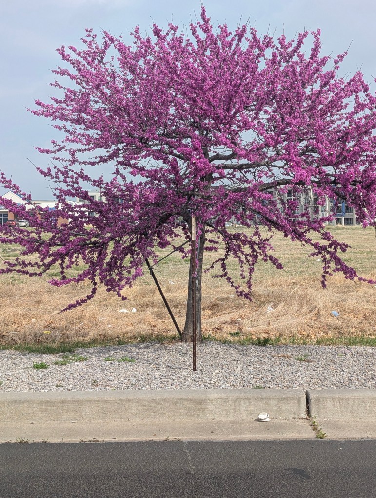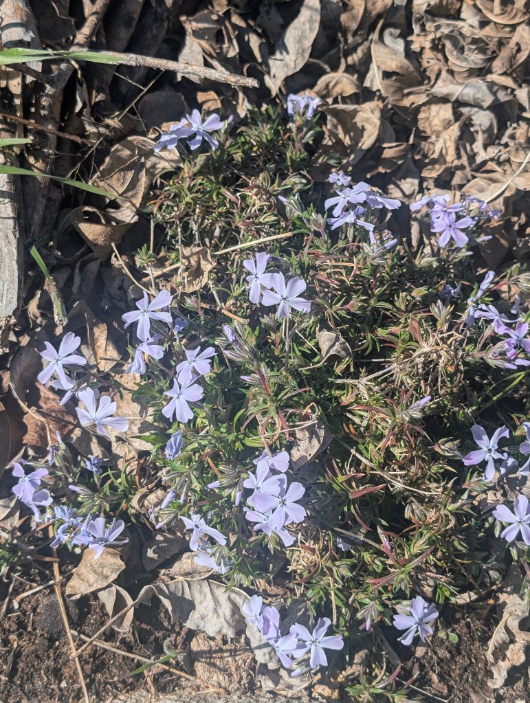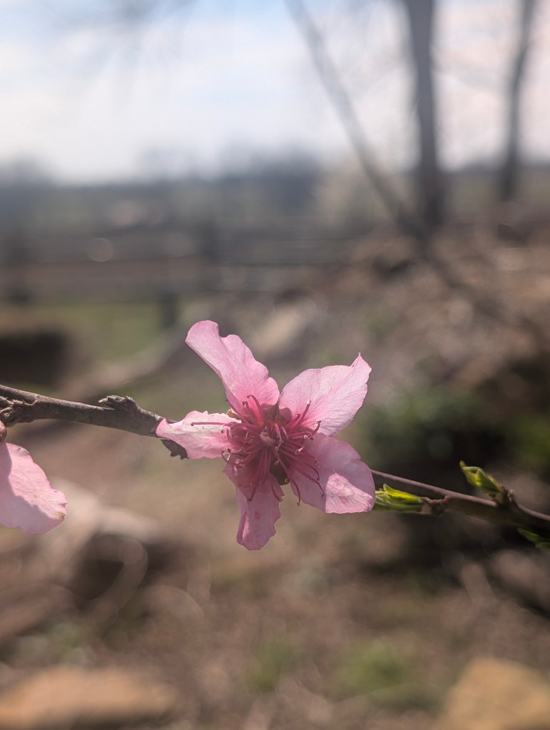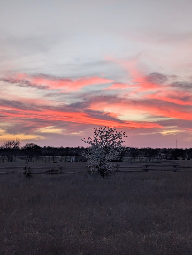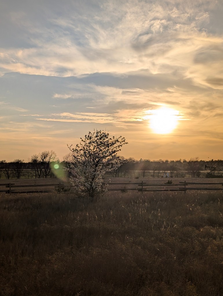 It has been a very windy week, even for Oklahoma. This means that the big temperature swings are returning. We’re going to have a hard freeze tonight and many things are already blooming. We got two new plants this week: a red honeysuckle vine and a small beardtongue penstemon called rock candy ruby. I’m hoping to get some hummingbirds with these. The other seedlings are still doing well and I have been continuing to harden them off on warm days. I saw some interesting and beautiful plants at the local nursery, including a spotted rose and a black eyed Susan coneflower hybrid called Echibeckia. I spotted the first slug of the year by the new hydrangea. The redbud trees and Bradford pear trees are blooming still and look amazing. I got my first butterfly photo of the year, a cabbage white. These are considered pests because they eat plants in the brassica family like broccoli, cauliflower, and cabbage 🥬. However, they are a beautiful pest. I do find Bradford pear and white honeysuckle to also be rather beautiful although considered invasive. I saw so many bees on the Bradford pear trees at the farm. We went to the farm yesterday for my birthday and I did a lot of weeding. I also planted a few more wildflower seeds because I can’t go without planting something. The cat is doing well but we noticed a small patch of fur missing on one of her back paws. We’re going to keep an eye on it to see if it improves. We had a few daffodils blooming as well as the phlox. The peaches were also blooming but may be affected by the freeze. The strawberries also had a lot of flowers already. The oregano is doing great and so is the asparagus. I found a praying mantis ootheca on the garden hose. We had a great dinner and tiramisu for my birthday. I cooked some asparagus this week and continued to draw lots of flowers. I decided to buy the Haiya oil pastels with my birthday gift card. I really appreciate the softness of these and I think they will be easy to blend. I have not finished the swatch chart yet but I will do it next week. I like that the set includes a swatch card. My watercolor set didn’t have one so I had to make my own. The sunset at the farm was very nice yesterday. Next week, I am planning to give sourdough bread a second chance.