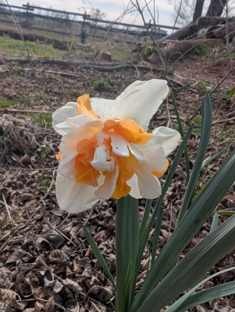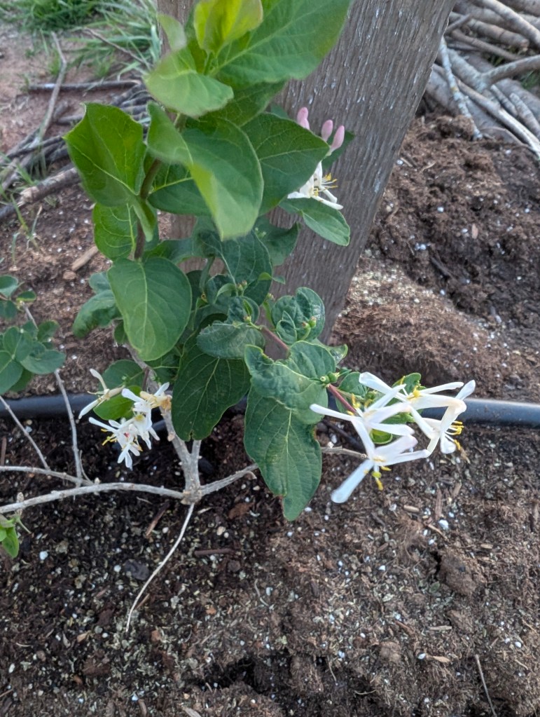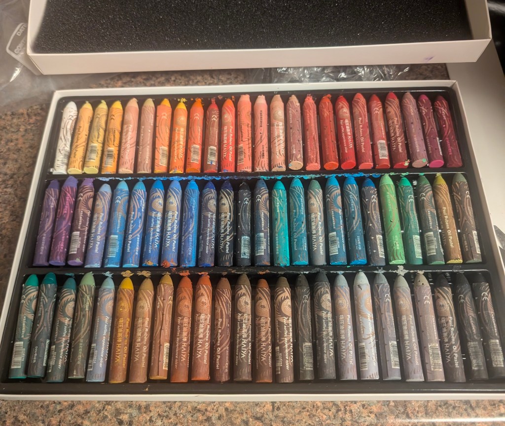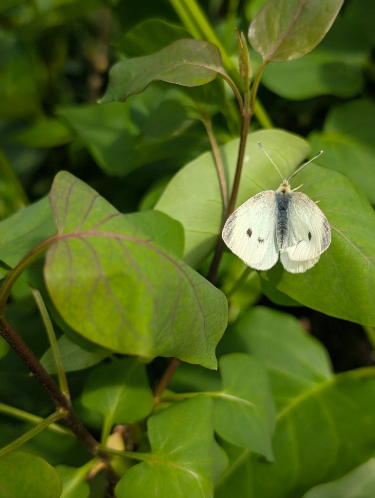 It has been a very windy week, even for Oklahoma. This means that the big temperature swings are returning. We’re going to have a hard freeze tonight and many things are already blooming. We got two new plants this week: a red honeysuckle vine and a small beardtongue penstemon called rock candy ruby. I’m hoping to get some hummingbirds with these. The other seedlings are still doing well and I have been continuing to harden them off on warm days. I saw some interesting and beautiful plants at the local nursery, including a spotted rose and a black eyed Susan coneflower hybrid called Echibeckia. I spotted the first slug of the year by the new hydrangea. The redbud trees and Bradford pear trees are blooming still and look amazing. I got my first butterfly photo of the year, a cabbage white. These are considered pests because they eat plants in the brassica family like broccoli, cauliflower, and cabbage 🥬. However, they are a beautiful pest. I do find Bradford pear and white honeysuckle to also be rather beautiful although considered invasive. I saw so many bees on the Bradford pear trees at the farm. We went to the farm yesterday for my birthday and I did a lot of weeding. I also planted a few more wildflower seeds because I can’t go without planting something. The cat is doing well but we noticed a small patch of fur missing on one of her back paws. We’re going to keep an eye on it to see if it improves. We had a few daffodils blooming as well as the phlox. The peaches were also blooming but may be affected by the freeze. The strawberries also had a lot of flowers already. The oregano is doing great and so is the asparagus. I found a praying mantis ootheca on the garden hose. We had a great dinner and tiramisu for my birthday. I cooked some asparagus this week and continued to draw lots of flowers. I decided to buy the Haiya oil pastels with my birthday gift card. I really appreciate the softness of these and I think they will be easy to blend. I have not finished the swatch chart yet but I will do it next week. I like that the set includes a swatch card. My watercolor set didn’t have one so I had to make my own. The sunset at the farm was very nice yesterday. Next week, I am planning to give sourdough bread a second chance.