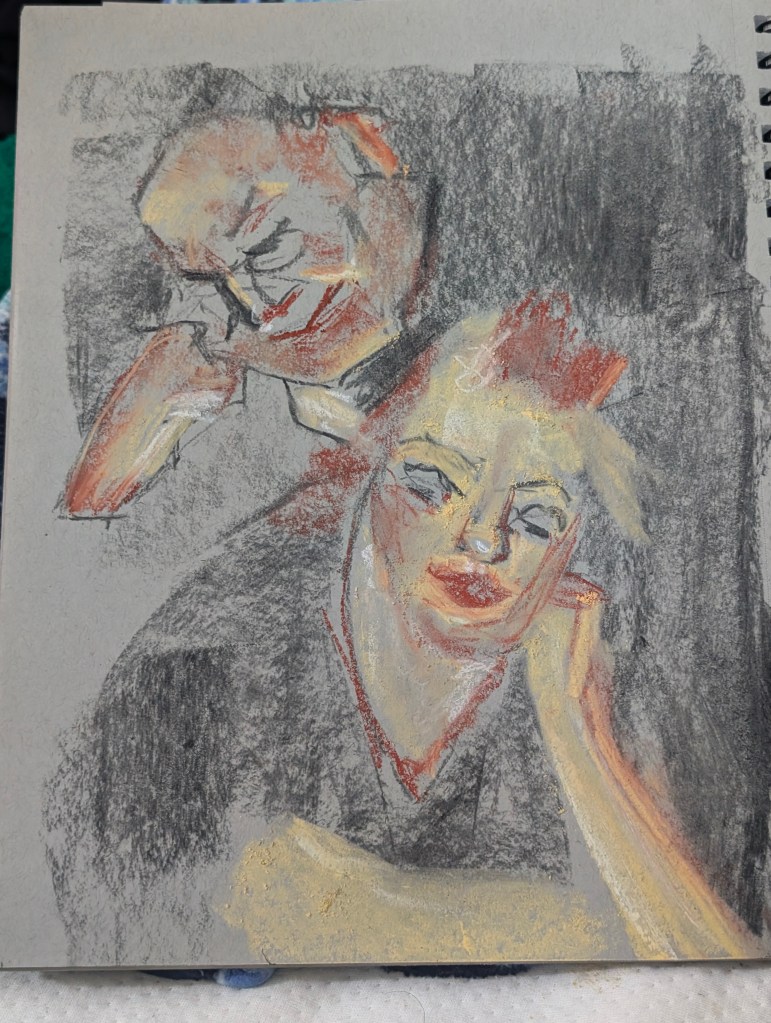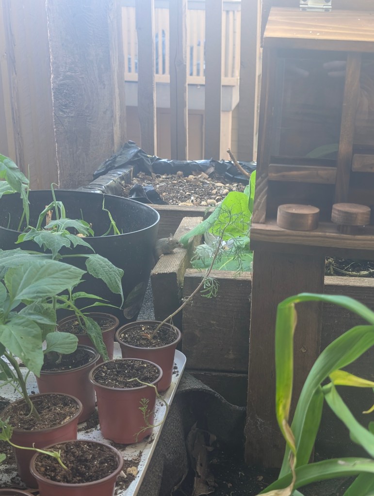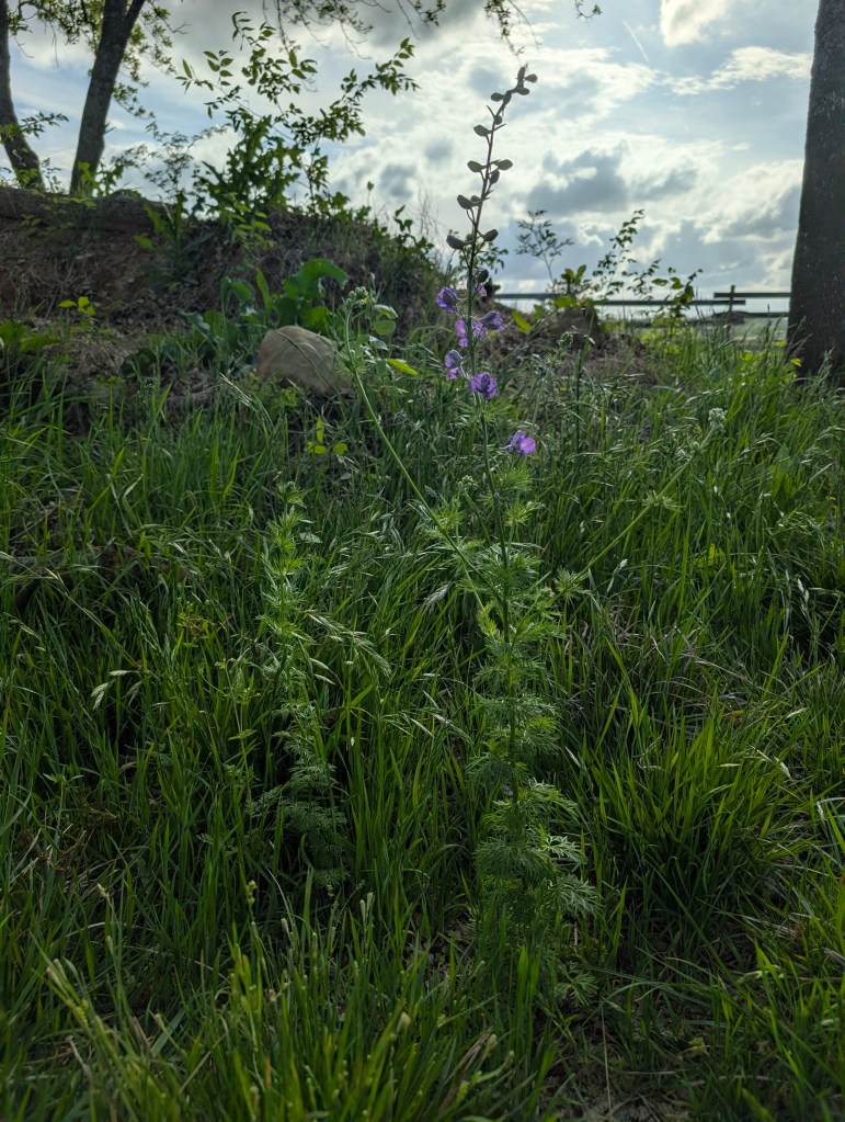 It has been windy and rainy in central Oklahoma this week. April is the rainiest month here and also the start of tornado season. We have been a serious drought so the rain is much needed. I finally got all of my seedlings planted out now that the danger of frost has passed. The garden is looking good with many things popping up. There’s also a lot of weeds and poison ivy that we need to get under control. We will spend time on maintenance on our next trip to the farm rather than planting. This week, I saw a beautiful purple larkspur blooming for the first time. It is really pretty, but I think they don’t like the hot summer temperatures. I also saw some new white irises blooming. I also planted the daylilies, irises, and daffodils I received from the library plant exchange last week. I went to a local plant sale on Saturday and picked up rue, coneflower, milkweed, and red yucca. We prepared the soil for the area where we will plant the sunchokes. I planted some Russian sage near the area for contrast. Last year, I planted chervil, which is an herb that is delicious with eggs. This year, it is everywhere. Or something that looks similar is. The problem is that chervil looks like another plant which is poisonous, poison hemlock. So wee probably won’t be eating it this year since we can’t be certain of its identity. It is a good idea to keep track of what you plant and where for this reason. This is a real struggle for me. Too many plants look similar to poisonous ones so be careful if you forage. Mushrooms can also be a bit hard to identify. I was pleased to see one of my clematis vines is about to bloom. It will probably be a few weeks before we can visit the farm again. The mice have returned to out balcony. I saw a really cute small one this week It has been another busy week at work so I didn’t draw much. Next week, I am going to share some of my thoughts about art and why I do it.
