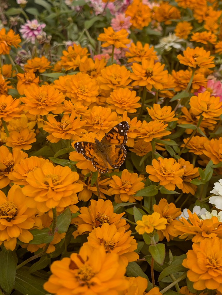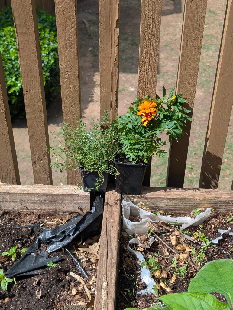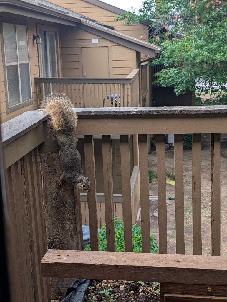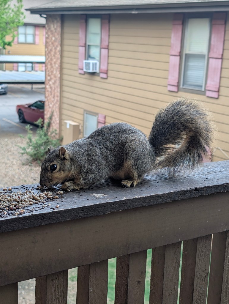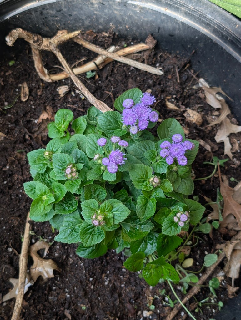 It has been another very windy and mostly cloudy week here in central Oklahoma. I didn’t get to go to check on the farm garden last week but we’re planning to go out there on Tuesday or Wednesday this week. I did pick up a few small annual plants from the local nursery Marcum’s for $1.50 each. I got a Durango marigold, a violet pentas, ageratum, and thyme. When I was at the garden center, I saw a cabbage white butterfly and a new butterfly, the American lady. I planted the pentas and ageratum on the balcony at the apartment since the squirrels have been digging up the pansies constantly. I’m not sure if the pansies will be able to bloom with this hot weather. I will take the marigold and the thyme out to the farm doon. The thyme we had planted two years ago didn’t make it and needs to be replaced. We have also gotten twenty more sunchokes and we will plant them this week. I also got a new water dish for the squirrels and birds this week that is made of metal and looks cute. I will take the old plastic bowl to the farm and the cat can use it as an extra water bowl. I did some drawing this week but didn’t have much time to paint. I’m always wishing there was more time for art in my life. It is so enjoyable for me that I am always trying to find ways to make time for it. I am hoping to do a painting next week of a ladybug for my mom for Mother’s Day. I also want to paint a robin for my sister’s birthday gift since her middle name is Robin. I will be planting as many seeds as I can when I go to the farm next week. Of course, the garden is really full of weeds now. So my strategy is to pull the weed and then plant a seed of something I do want where the weed had been. However, I have learned that some weeds multiply more when pulled instead of cut. Our primary weeds this year are chervil and prickly lettuce. We also have a lot of Carolina horsenettle and poison ivy. It is hard to believe that May is almost here.